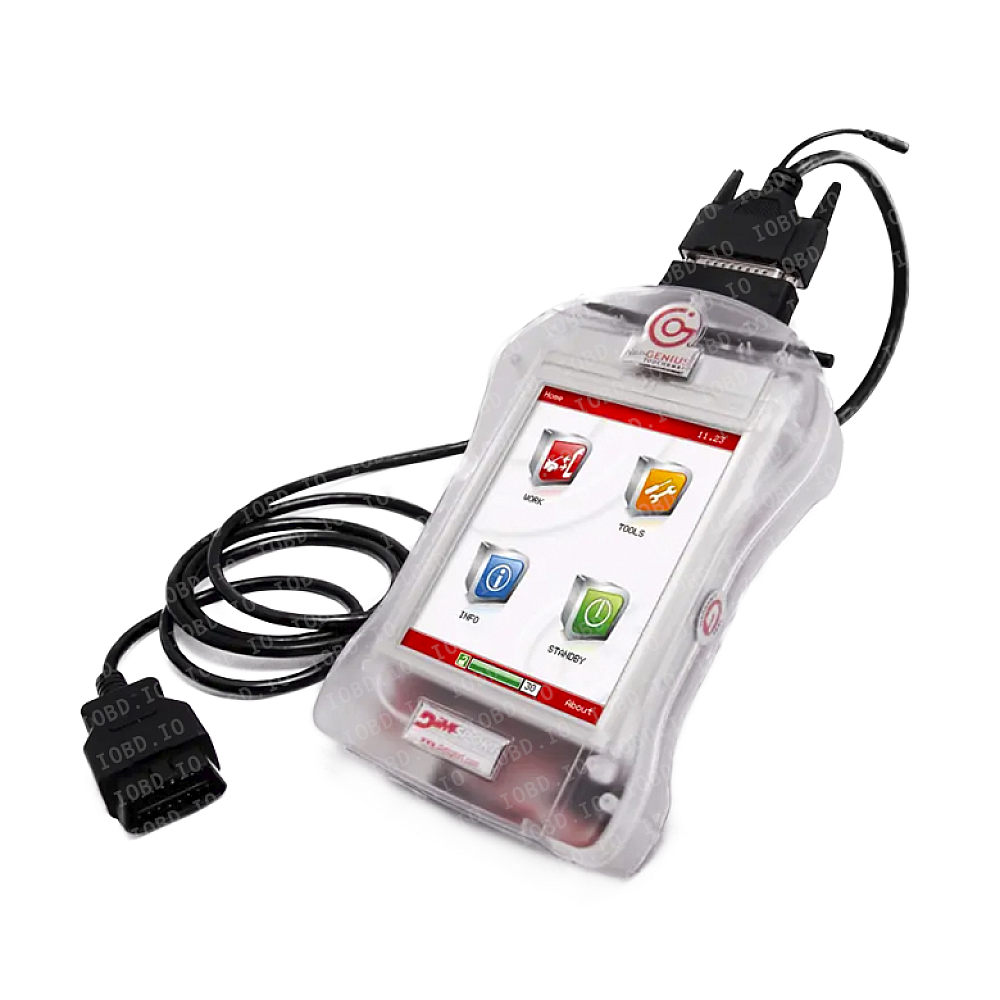 The New Genius equipment is designed as a standalone scanner with a touch color display that does not require connection to a personal computer. One of the main features is its unique proprietary operating system, which supports work via K/L-line (KWP) and CAN bus, as well as via the J1850 protocol with a wide range of American, European, and Asian brand vehicles.
