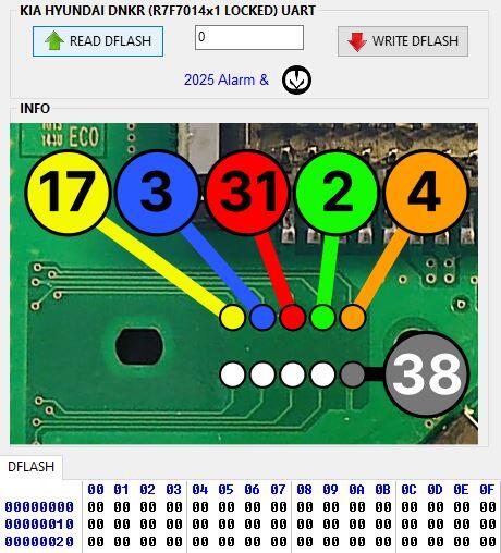 This Kia/Hyundai DNKR Locked (R7F7014x1) dashboard script is designed for recovery instrument clusters (dashboards) of Kia and Hyundai vehicles from 2024–2025 equipped with locked MCUs (microcontrollers) via the UART interface.