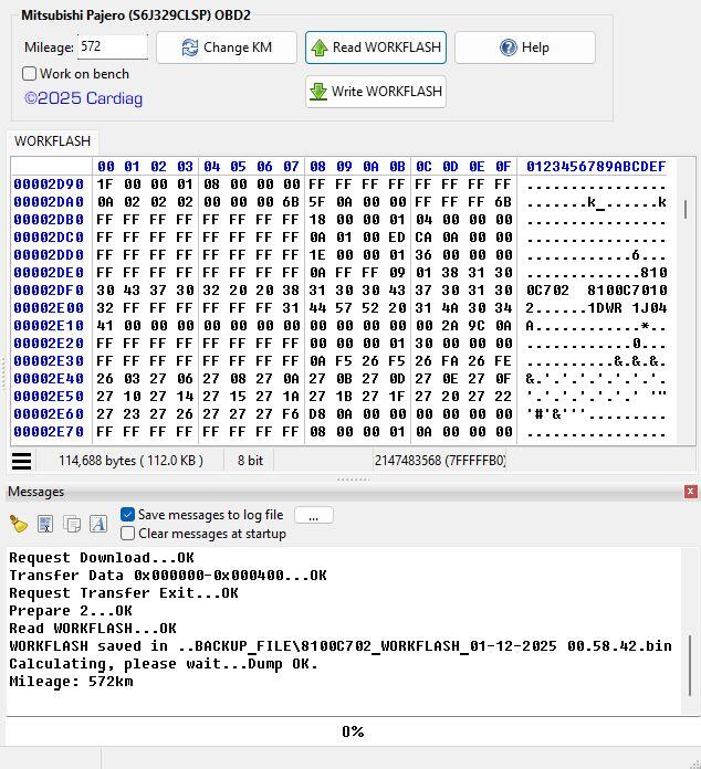 A script for iProg Pro designed to work with instrument clusters of Mitsubishi Pajero / Mitsubishi Montero vehicles equipped with the Spansion S6J329CLSP (Visteon) microcontroller. The solution allows fast and safe mileage restoration via the OBD2 diagnostic port, without disassembling the instrument cluster.